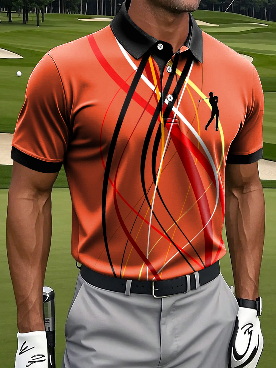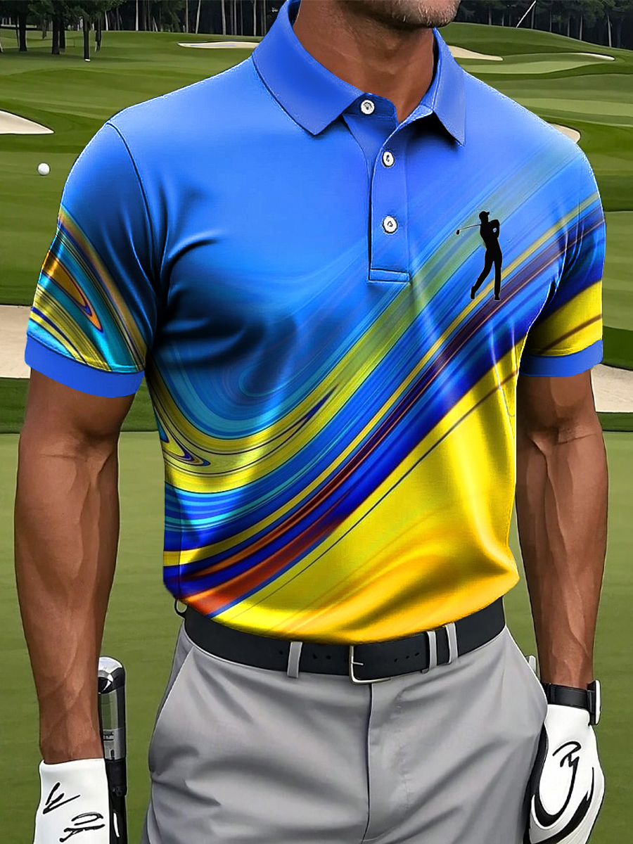 Men's Abstract Gradient Line Art Print Casual Business Polo Shirt