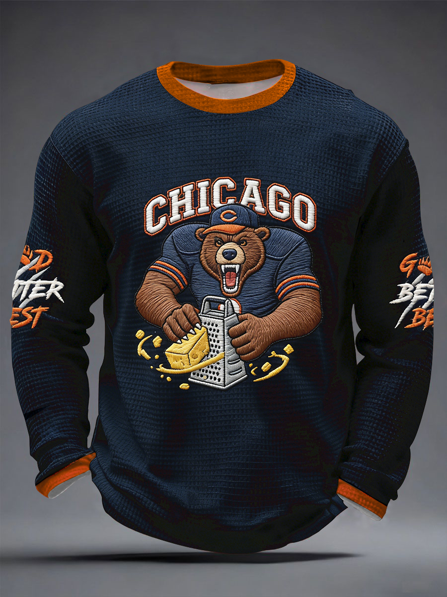 Men's Good Better Best Print Football Fans Gameday Casual Waffle Long Sleeve T-Shirt
