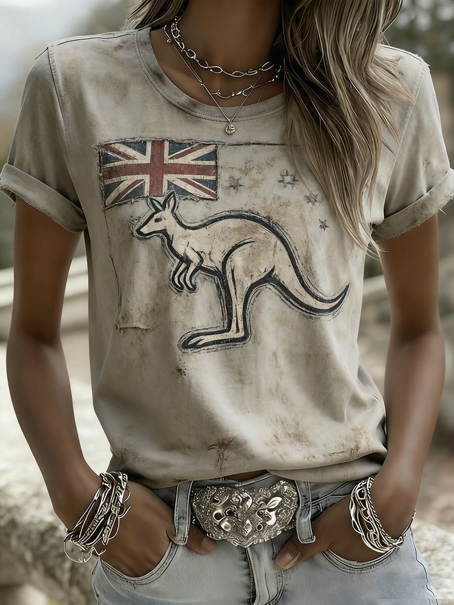 Women's Vintage Australian Flag Badge Art Print Comfortable Casual Cotton Short-sleeved T-shirt