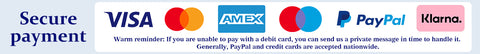 Paypal is one of the most popular online payment methods in the world. We are fully PayPal verified so that you can always shop with peace of mind.