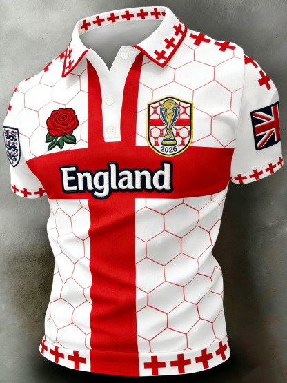 Men's England Football Cheering Print Fan Polo