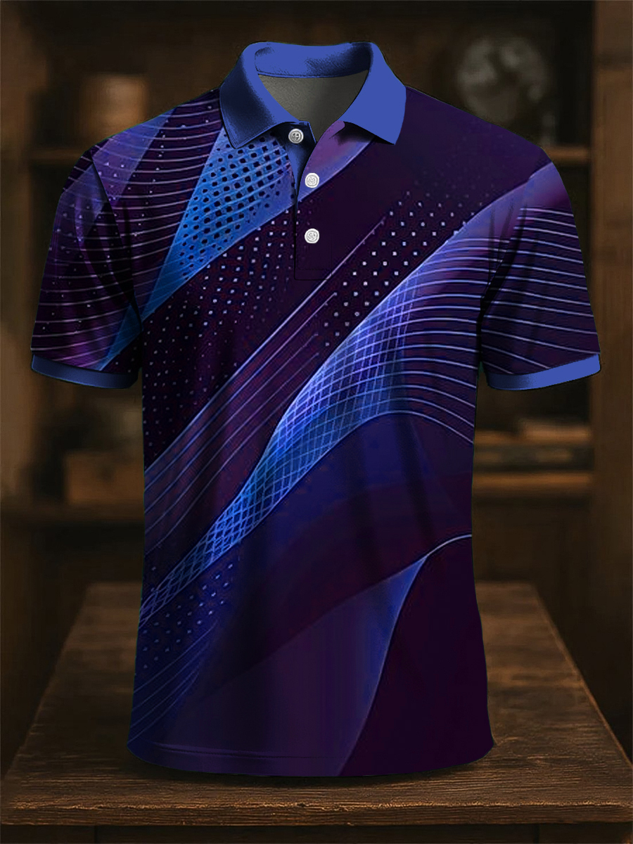Men's Retro Line Polka Dot Textured Art Print Casual Business Polo Shirt