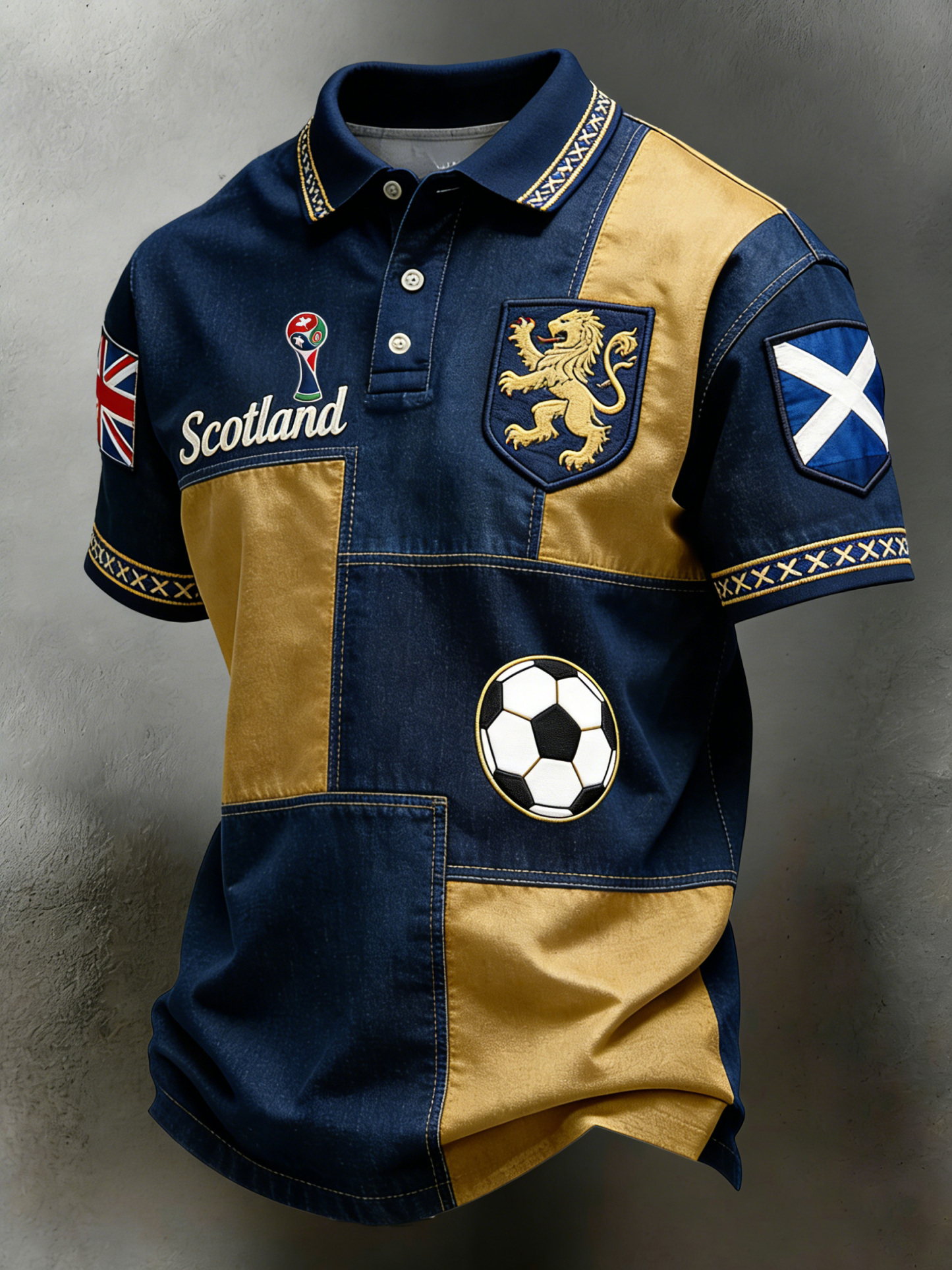 Men's Scottish Football World Cup Art Patchwork Print Fan Polo