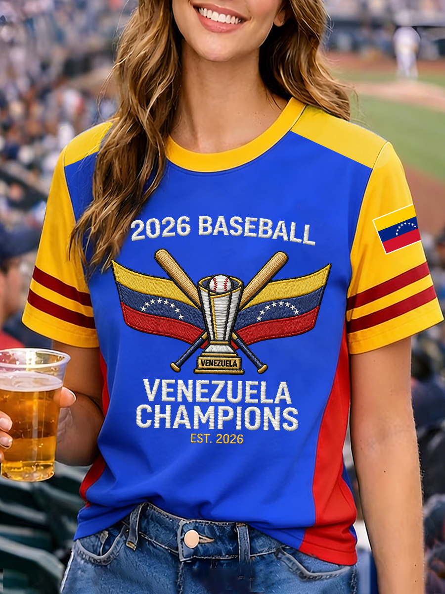 Women's Celebrate Venezuela 2026 Baseball Champions Print Casual Tee