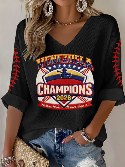 Women's Celebrate Venezuela 2026 Baseball Champions Print Casual Waffle T-shirt