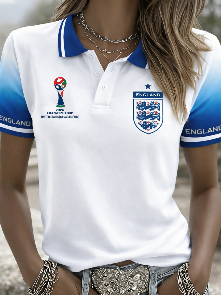 Women's Retro English-Style Artistic Print Casual Fan Polo Shirt